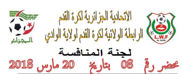 تعلم لجنة المنافسة بالرابطة الولائية لكرة القدم بالوادي  جميع الفرق انها اصدرت المحضر رقم   08 للأطلاع على المحضر  يرجى الضغط على:  النشرة الرسمية  لجنة تنظيم المنافسة