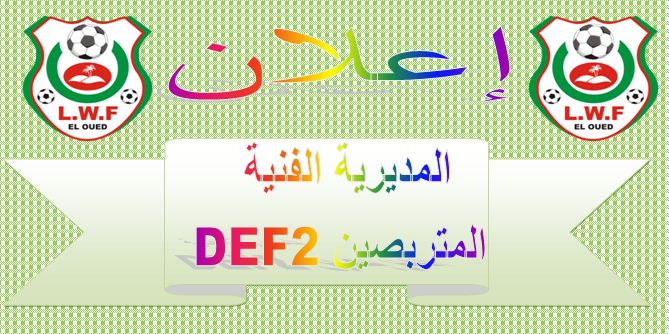 تعلن المديرية الفنية على افتتاح تربص المدربين DFE2 فلهذا نطلب من المتربصين تأكيد المشاركة بطلب خطي للرابطة الولائية لكرة القدم بالوادي