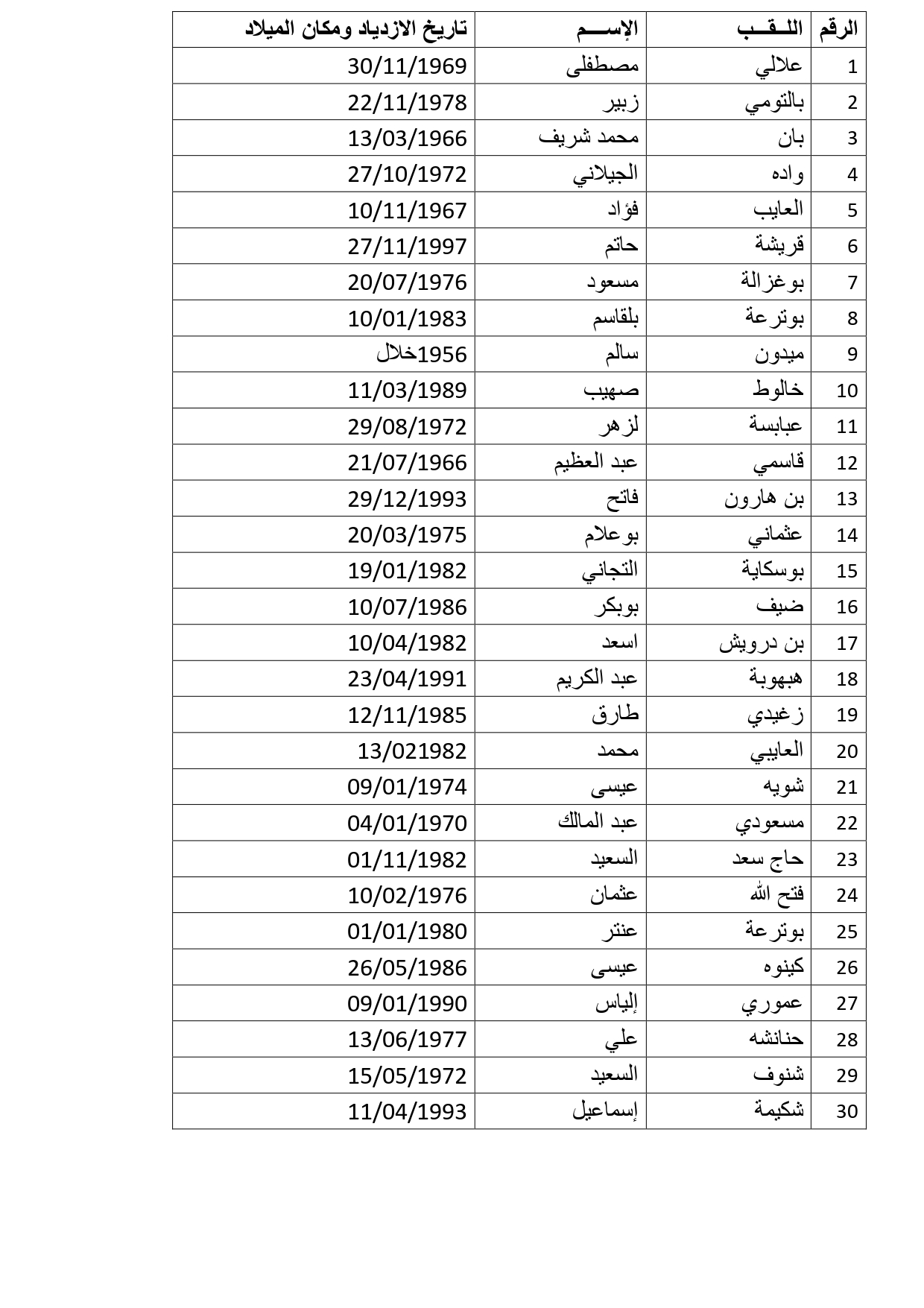 القائمة الإسمية للمتربصين :