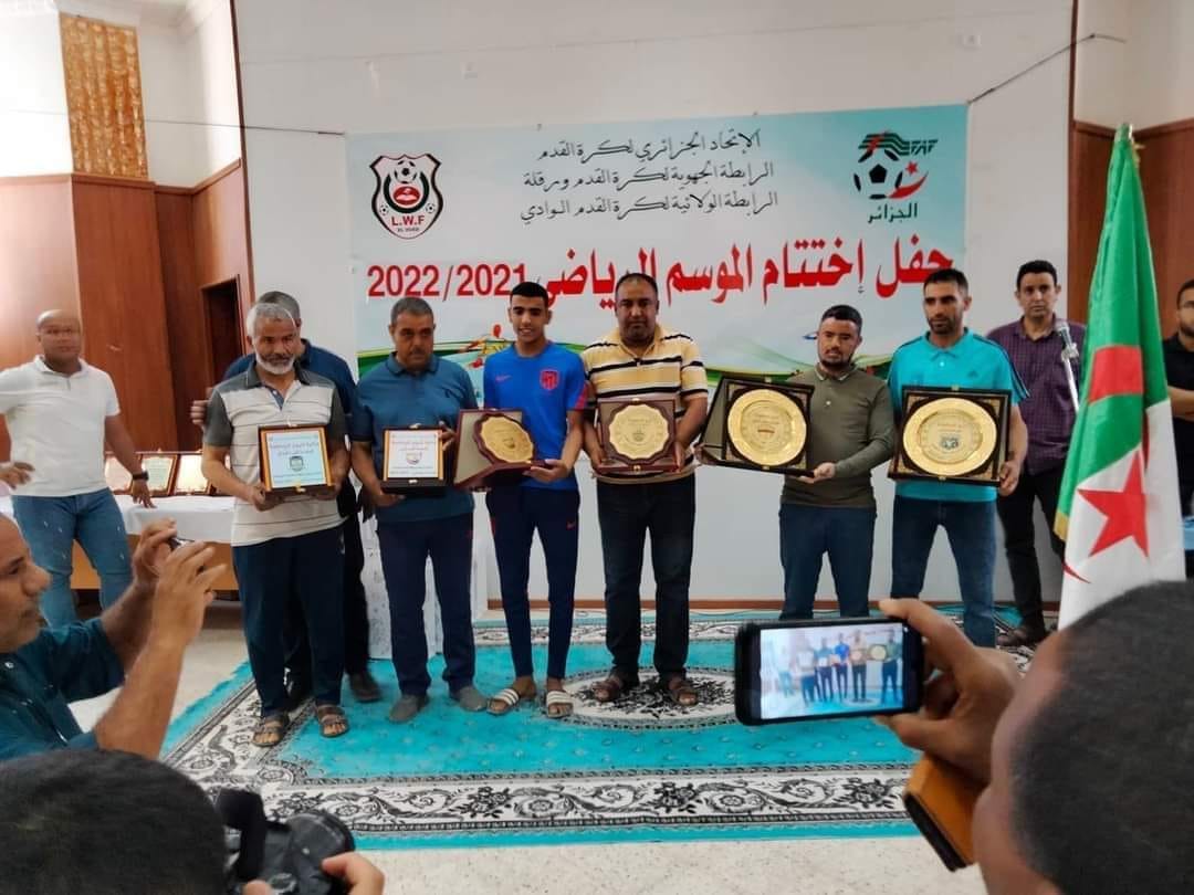 في إطار اختتام الموسم الرياضي الحالي نظمت الرابطة الولائية لكرة القدم حفلا ختاميا كان مميزا والذي من خلاله تم تكريم النوادي الصاعدة للاقسام العليا الخاصة بولاية الوادي كما تم تكريم وجوه رياضيه سابقة وحكام قدامى كما كان نصيب لجمعية حكام ولاية الوادي البعض من التكريمات حيث كرم البعض من أعضائها.