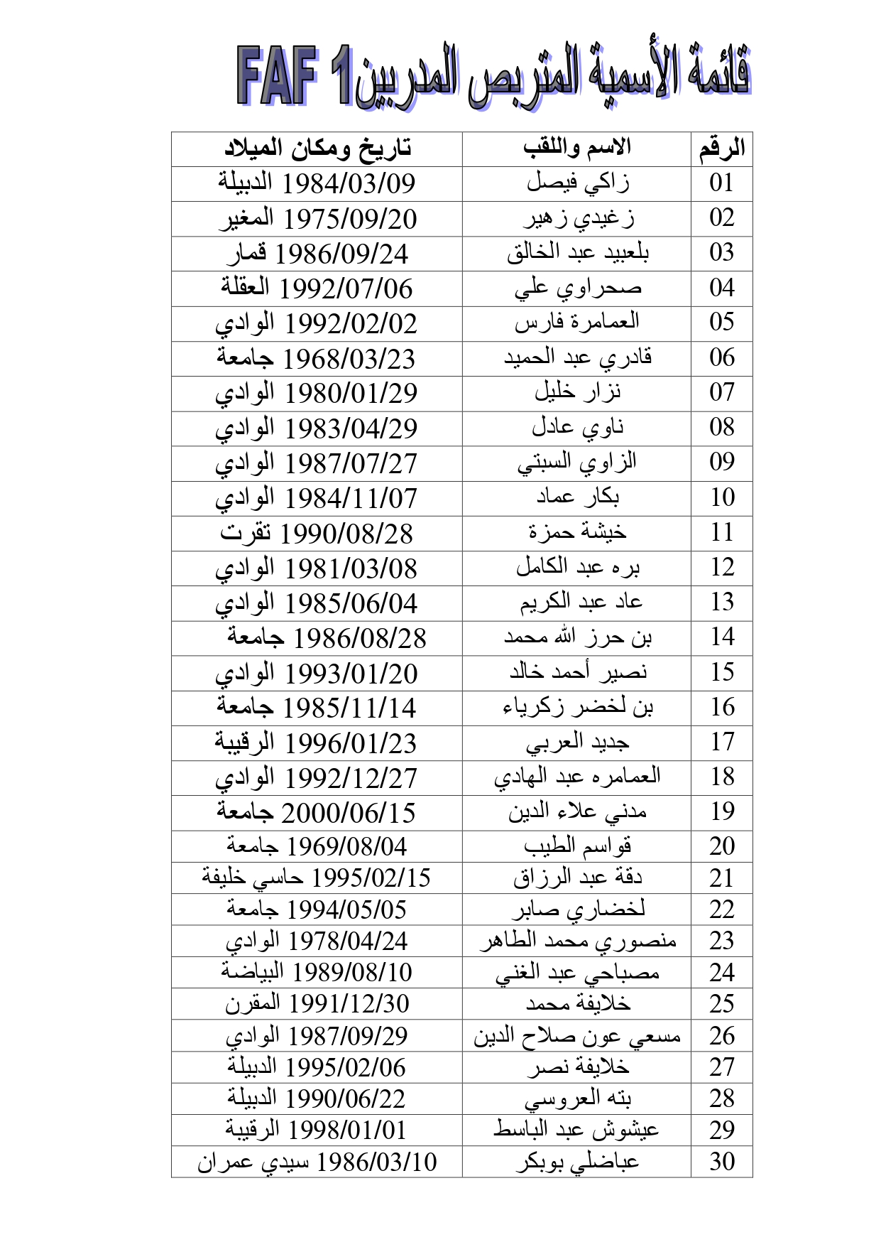 تعلن المديرية الفنية الولائية لكرة القدم بالوادي كافة المدربين المعنيين بهذا التربص(FAF1) إلى تكملة ملفاتهم على مستوى مقر الرابطة الولائية،وذلك في اقرب الآجال.