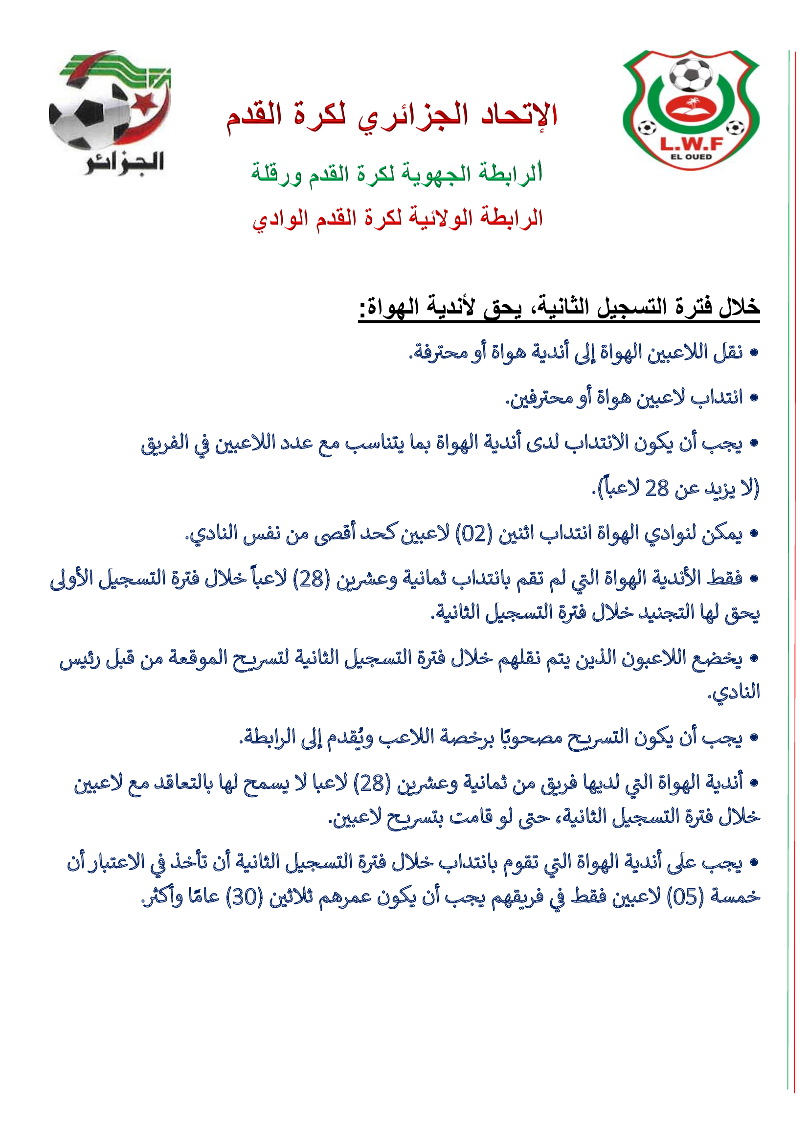 * تحميل وثيقة تسريح اللاعب انقر هنا