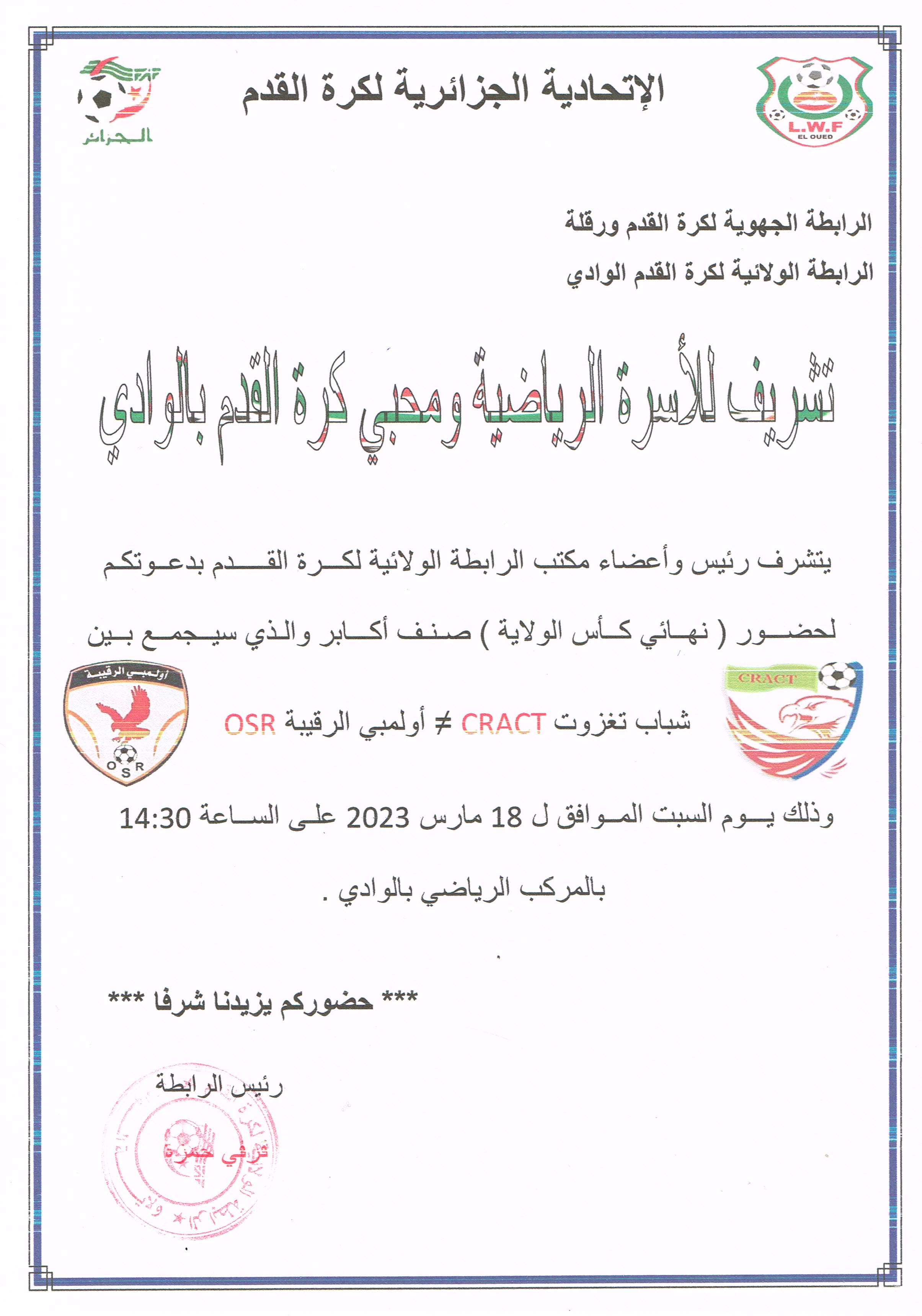 جميع الحقوق محفوظة © 2014 - 2026 الرابطة الولائية لكرة القدم - الوادي.
