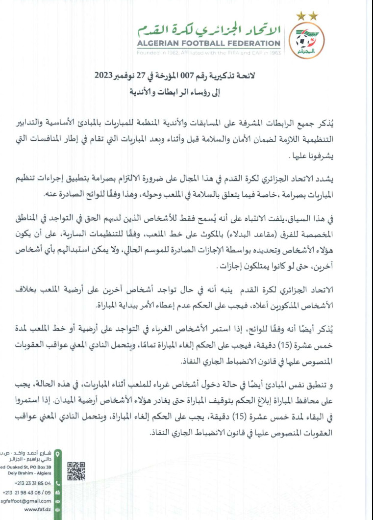 لائحة تنظيمية من FAF