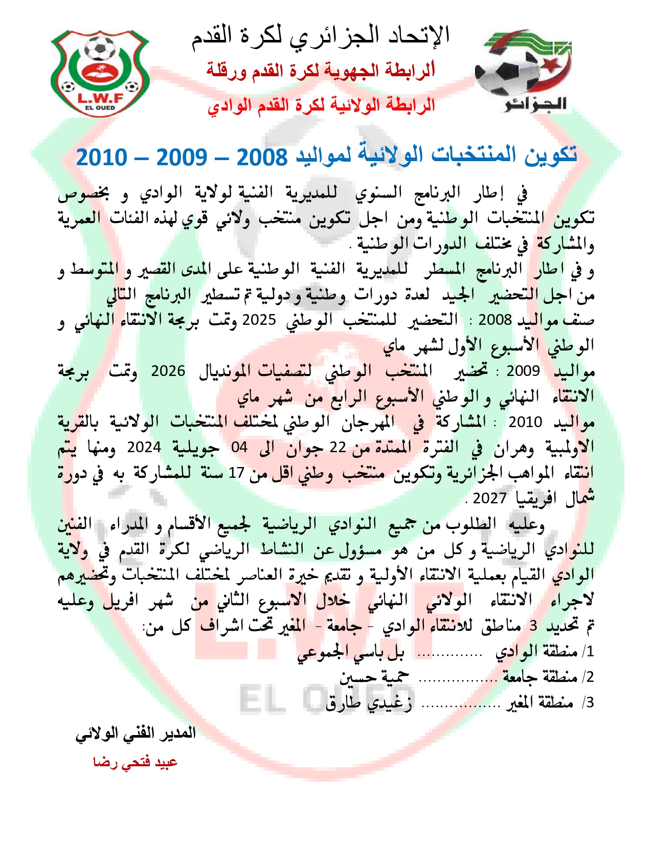 جميع الحقوق محفوظة © 2014 - 2026 الرابطة الولائية لكرة القدم - الوادي.