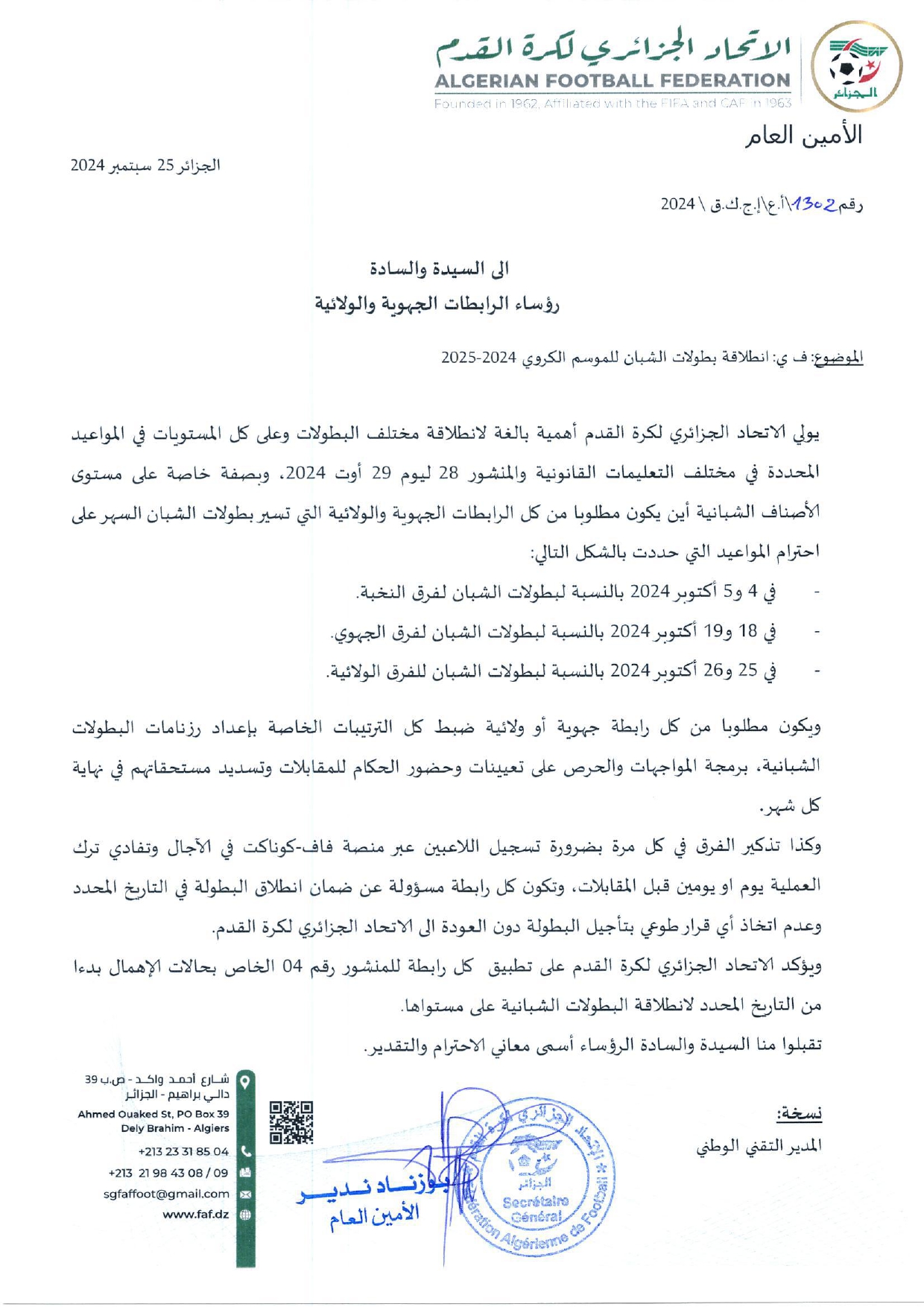 جميع الحقوق محفوظة © 2014 - 2026 الرابطة الولائية لكرة القدم - الوادي.