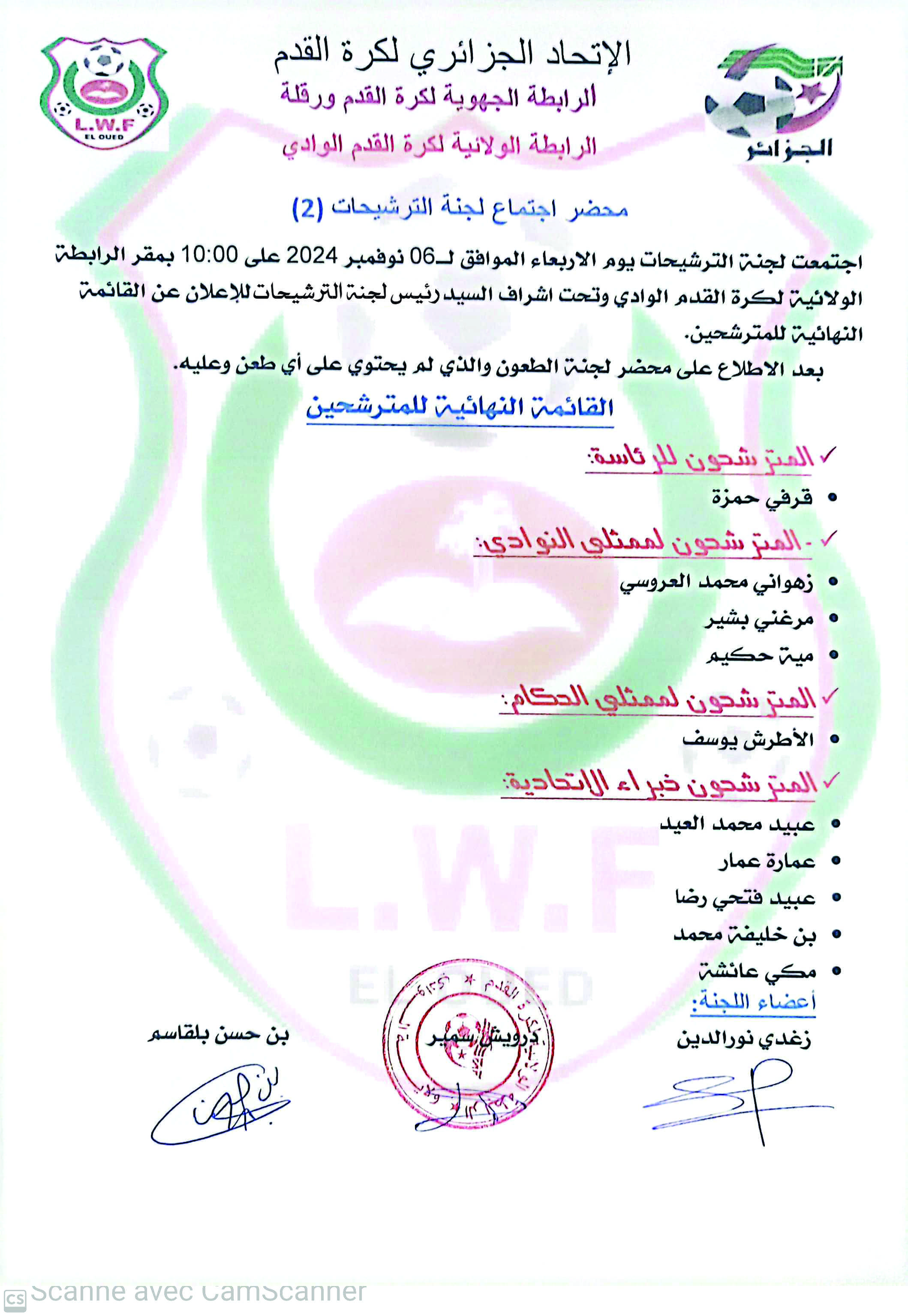المحضر النهائي للجنة الانتخابات