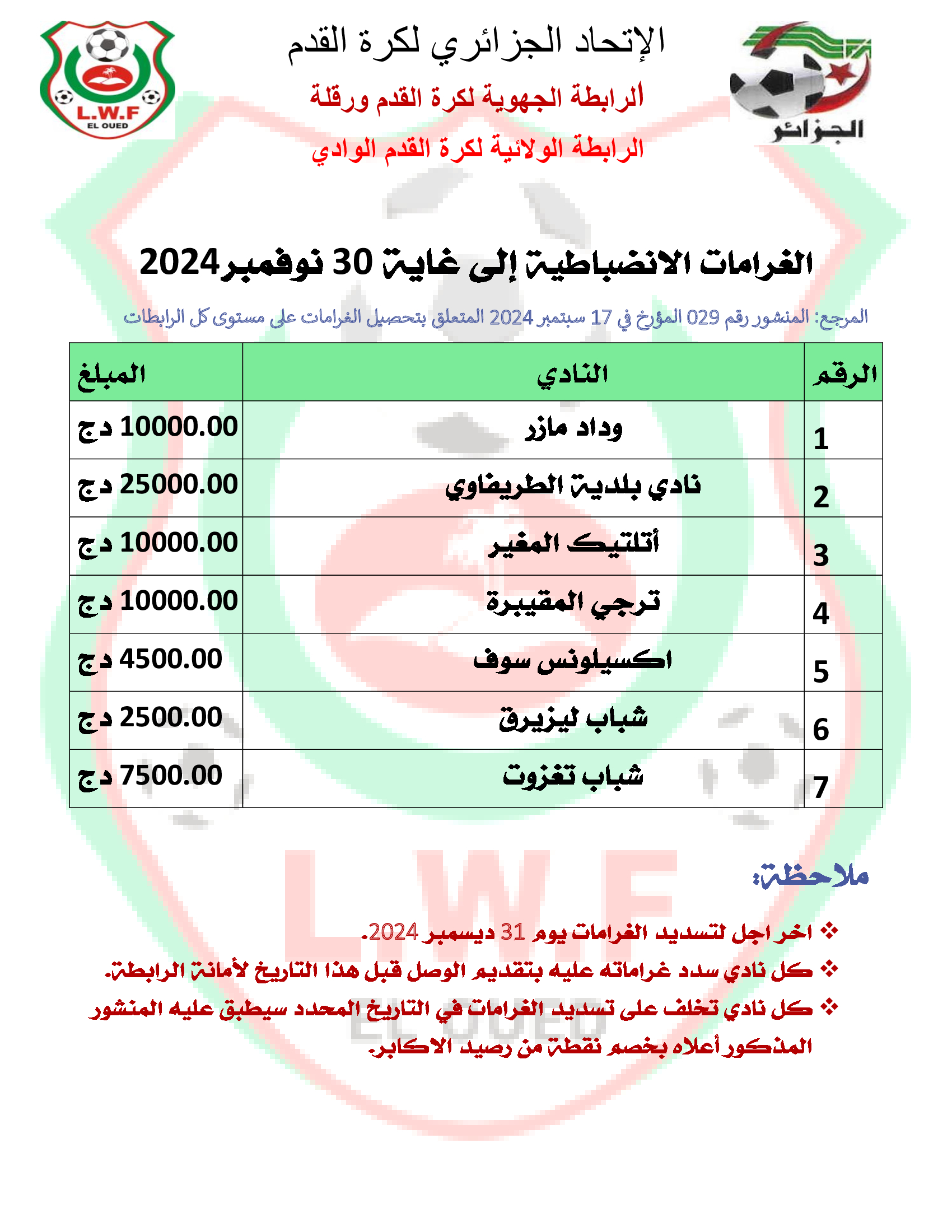جميع الحقوق محفوظة © 2014 - 2026 الرابطة الولائية لكرة القدم - الوادي.
