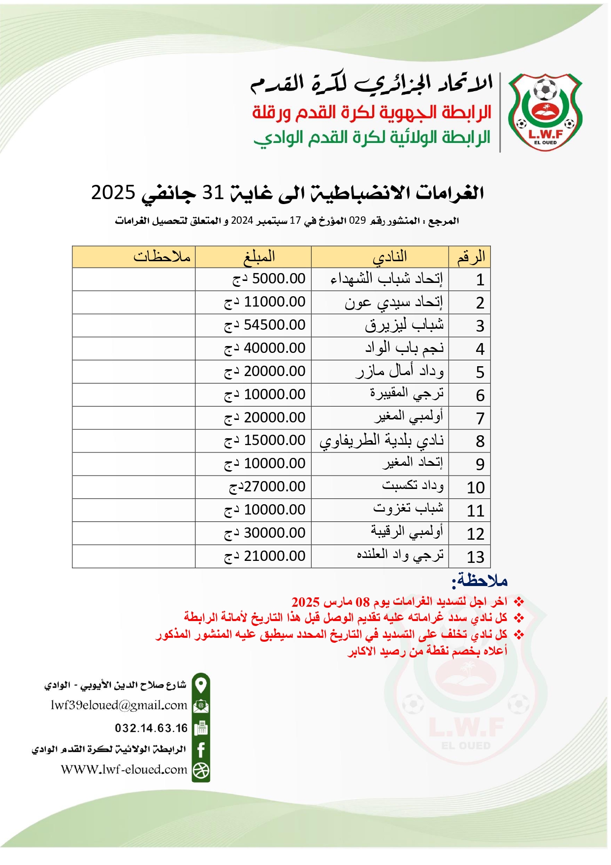 جميع الحقوق محفوظة © 2014 - 2026 الرابطة الولائية لكرة القدم - الوادي.