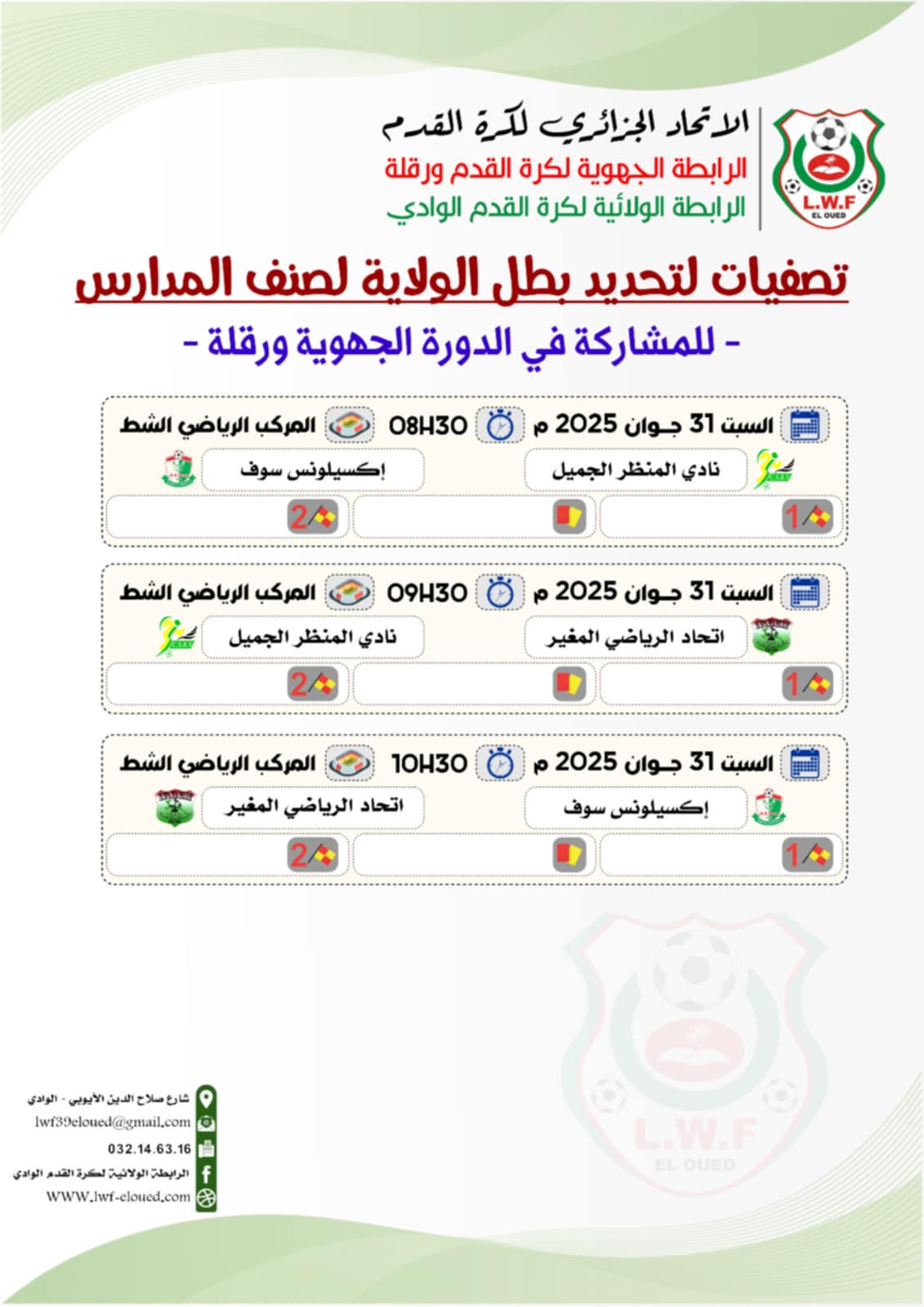 جميع الحقوق محفوظة © 2014 - 2026 الرابطة الولائية لكرة القدم - الوادي.