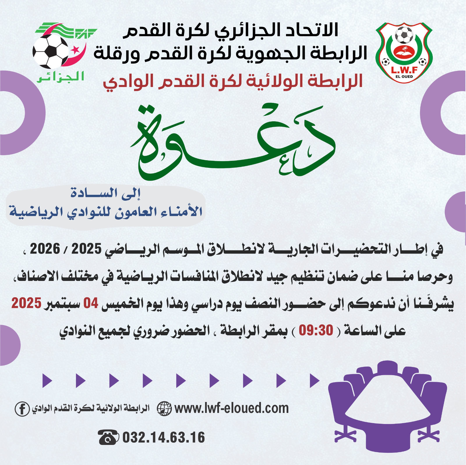 دعوة حضور لإجتماع تنسيقي (الأمناء العامون للنوادي)