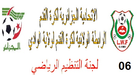 تعلم لجنة تنظيم المنافسة بالرابطة الولائية لكرة القدم بالوادي جميع الفرق انها اصدرت المحضر رقم 06 للأطلاع على المحضر يرجى الضغط على: النشرة الرسمية لجنة تنظيم المنافسة