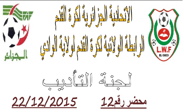 تعلم لجنة الانضباط بالرابطة الولائية لكرة القدم بالوادي  جميع الفرق انها اصدرت المحضر رقم 12  للأطلاع على المحضر  يرجى الضغط على:  النشرة الرسمية  لجنة الأنضباط