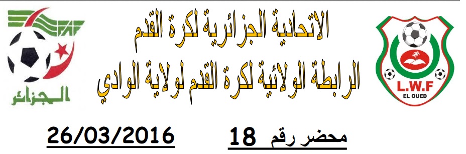 تعلم لجنة المنافسة بالرابطة الولائية لكرة القدم بالوادي جميع الفرق انها اصدرت المحضر رقم 18الذي عالج عدة قضايا معروضة امام اللجنة المختصة للأطلاع على المحضر يرجى الضغط على: النشرة الرسمية لجنة المنافسة