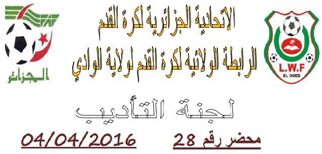 تعلم لجنة الانضباط بالرابطة الولائية لكرة القدم بالوادي جميع الفرق انها اصدرت المحضر رقم 28 للأطلاع على المحضر يرجى الضغط على: النشرة الرسمية لجنة الأنضباط