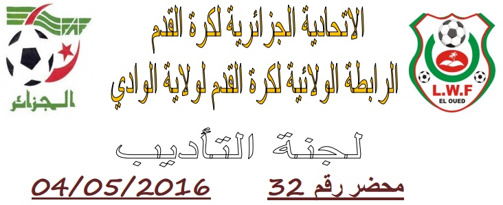 تعلم لجنة الانضباط بالرابطة الولائية لكرة القدم بالوادي جميع الفرق انها اصدرت المحضر رقم 32 المتضمن العقوبات المتبقية العام القادم للأطلاع على المحضر يرجى الضغط على: النشرة الرسمية لجنة الأنضباط