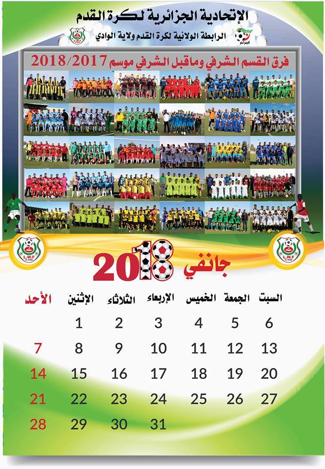 إصدار جديد سيوزع قريبا من الرابطة الولائية لكرة القدم يتمثل في سنوية تضم جميع صور فرق الشرفي وما قبل الشرفي لولاية الوادي بالتوفيق الى جميع الفرق